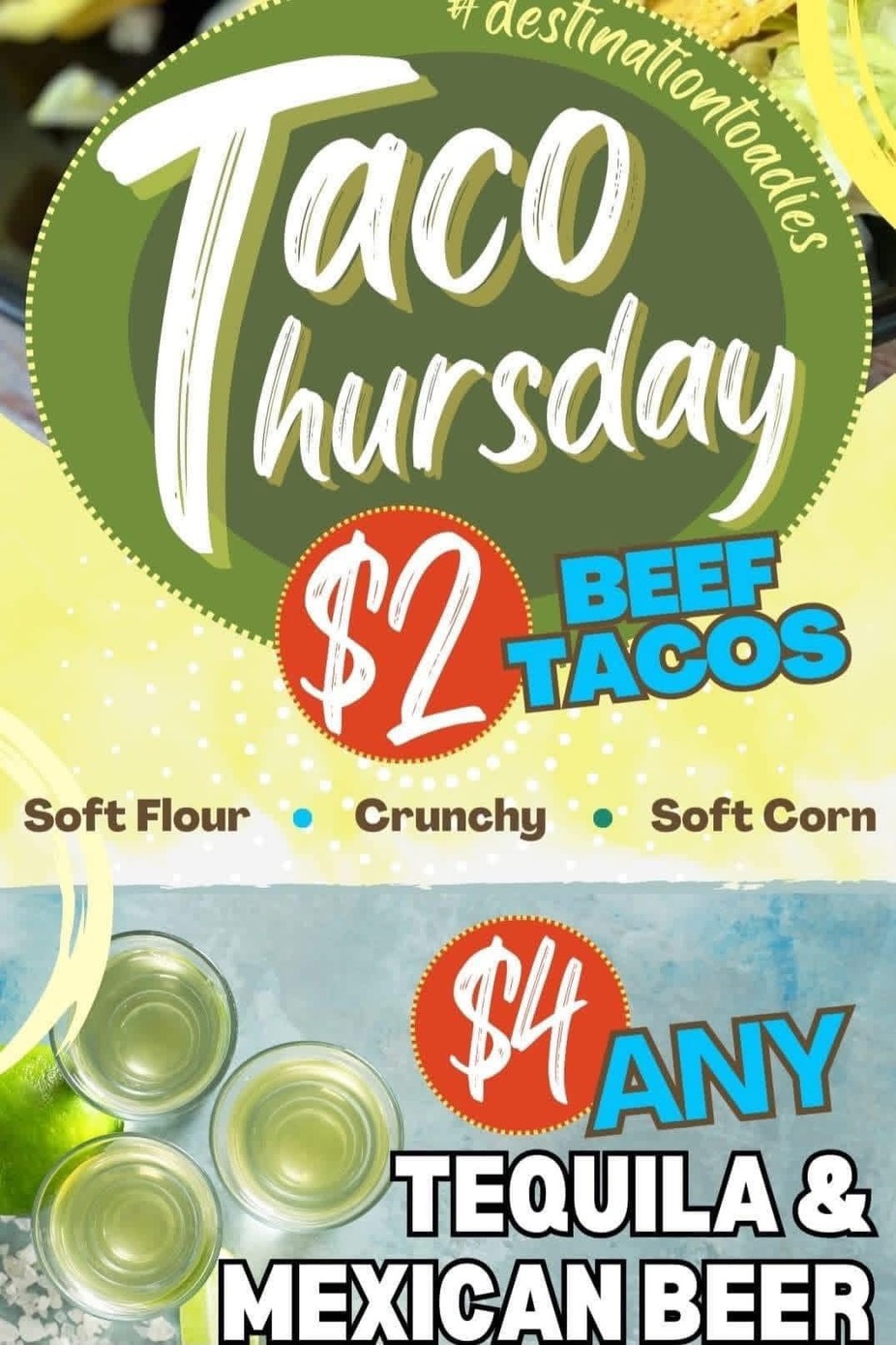 $4 ANY Tequila, Mexican Beers All Day & $2 Beef Tacos(Until 11)
